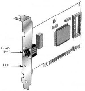 NIC dapat dikenali dengan mudah. Hanya sebuah Port (jalur) khusus yang disebut RJ-45. RJ berarti Registered Jack. Dan juga sebuah lampu led untuk mengindikasikan sebuah data sedang dikirim.